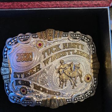 So this year the Bassett High School Rodeo had your names put on the buckle you won. Tucker’s came today. I hope Mr. Nasty likes his buckle